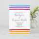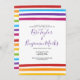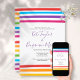 Eine moderne, lebendige Einladung mit farbenfrohen Regenbogenfarben-Streifen auf beiden Seiten Ihrer Hochzeitsdetails, wobei die Namen der glücklichen Paare in einem ausdrucksvollen Script-Schriftart hervorgehoben werden. Entwickelt von Thisisnotme©