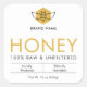 Create custom packaging stickers for your honey jars using this modern Honey Product Label design, featuring a minimal layout, honey bee graphic and fully editable text and colors.
