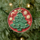Add festive charm to your holiday décor with this Modern Red & Green Christmas Tree Family Ornament. Featuring a vibrant embossed-style Christmas tree surrounded by golden ornaments and confectionery details, this design brings classic holiday cheer with a modern, artistic twist. The reverse side offers an elegant personalization area - easily customize with your family name and year for a timeless keepsake that celebrates your holiday memories in style. Perfect for decorating your own tree or gifting to loved ones, this ornament is a wonderful way to commemorate special family moments this Christmas season.