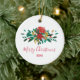 Modern Red Green & Gold Christmas Floral Keramik Ornament