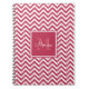Personalisiertes Spiralheft mit Zickzack Muster in Viva Magenta (krümelrot) mit individuelle Name in weißer Handschrift und Monogramm in Korallen.