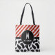 Moderne Red White Black Pattern Monogram Custom Tote Bag ist trendy und stilvoll, um jeden Tag zu verwenden, wenn Sie draußen sind und herum. Auch ein tolles Geschenk für seine oder ihre. Personalisieren Sie es mit Ihrem Initial und Namen.