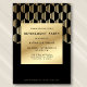 Celebrate a remarkable career with this elegant black and gold retirement invitation, designed for a modern, formal gathering. A rich matte-black background pairs seamlessly with warm metallic gold tones, creating a timeless yet contemporary look. The front features clean typography framed by a refined gold panel, while the back showcases a full geometric pattern for added visual interest and upscale appeal.