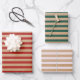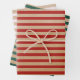 Modern Retro Cream Red Green Stripes Kraft Geschenkpapier Set