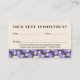 Keep your schedule organized with this stylish appointment card featuring a chic mid-century modern geometric pattern. The elegant lavender and cream design provides a professional way to track client bookings while reinforcing your brand identity. It includes a dedicated space for a QR code to link directly to your online booking system or social media. Perfect for skincare specialists, hair salons, and wellness professionals. The pattern colors are 100% customizable using the Zazzle design tool to match your business palette perfectly.