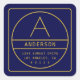 Modern Return Address & Monogram | Gold & Navy Quadratischer Aufkleber