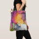 Diese moderne rosafarbene, florale Tote Tasche zeichnet sich durch eine kühne abstrakte Blume aus. Das Originalgemälde wurde mit Alkoholfarben angefertigt, die wunderschön zur Schaffung fließender Darstellungen beitragen.