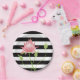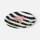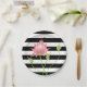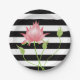 Ein hübscher rosa Lotus bläst sanft über einen schwarz-weiß gestreiften Hintergrund. Dieses Design funktioniert für viele Arten von Feiern, von Geburtstagen bis zu Brautpartys, Hochzeiten, Gartenklubessen, Empfängen und mehr.