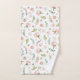 Schönes rosafarbenes Rosenknospen Blumenmuster Badetuch Set auf einem neutralen, weißen Hintergrund.