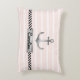 Trendy Akzent Kissen mit grauem Wasserfarbenanker auf einem hellrosa und weiß gestreiften Hintergrund. Sie können das Design auch mit eigenem Text unter dem Anker personalisieren.