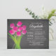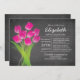 Modern Chalkboard Pink Tulip Bridal Dusche Einladung mit einem beliebten Chalkboard Hintergrund mit einem hübschen Bouquet von schönen rosa Tulpen. Perfekte zeitgemäße Braun-Dusche-Einladung für ein Frühling- oder Sommerhotel.
