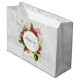 Eine große Geschenktasche mit hübschem Design. Eine Blumenstruktur mit vielen verschiedenen Blume in Rot-, Rosa- und Weißtönen und viel grünem Blattwerk. Ein überlagerter Rahmen mit einem Imitat-vergoldeten Rahmen. Elegantes Design. Hintergrund aus weißem Marmor. Personalisieren Sie die Daten mit einem Namen und Monogramm als Initial.
