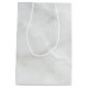 Eine Geschenktasche mit hübschem Design. Eine Blumenstruktur mit vielen verschiedenen Blume in Rot-, Rosa- und Weißtönen und viel grünem Blattwerk. Ein überlagerter Rahmen mit einem Imitat-vergoldeten Rahmen. Elegantes Design. Hintergrund aus weißem Marmor.