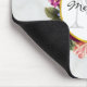 Personalisiertes Mauspad mit hübschem Aquarelldesign. Eine Blumenstruktur mit vielen verschiedenen Blume in Rot-, Rosa- und Weißtönen und viel grünem Blattwerk. Ein überlagerter Rahmen mit einem Imitat-vergoldeten Rahmen. Elegantes Design. Hintergrund aus weißem Marmor. Personalisieren Sie die Daten mit einem Namen und Monogramm als Initial.