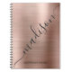Modern, girly rose gold monogram script signatur custom personalized spiral notebook. This feminine design Featuring a-Rose gold brushed metallic background, a huge hand-writing signatur name or monogram text template. The name is written in a huge beautiful swirly hand lettered swash tail stilvoll. Great feminine gift for girls and woman for school, home office, business, birthday, wedding, bridal shower, sweet 16 birthday party, or anyone who loves pretty girly modern style.
