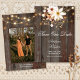 Modern Rustic Wood Floral Lights Wedding Save Our Date card with a photo upload on the back. Invite your guests with this stunning country-chic wedding theme, upload your favorite engagement photo. The design features a realistic distressed wood background accented by warm, glowing string lights and a delicate bouquet of white and beige watercolor flowers. The rustic-glam design is perfect for couples hosting an outdoor, farmhouse, ranch, or barn wedding. Easily customize with your details. Pair with the matching invitation at Cross Fox Design. Contact the designer for any customization questions.