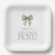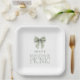 Modern Sage Gingham Bow Name Baby Shower Picnic Pappteller