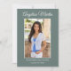 Moderne, niedliche und schicke, schlaue grüne, zweiseitige Abschluss Foto-Ankündigung Flachkarte für Klasse 2022 oder jedes Jahr. Personalisieren Sie mit Ihrem eigenen Foto auf der Vorderseite, Ihrem Namen, Schulnamen und Abschluss Jahr. Vertikal formatiert. Die Rückseite dieser Karte hat 2 Fotos und alle Details, die Sie möchten. Beinhalten Sie Schulleistungen, Zukunftspläne, Informationen zur Abschlussfeier oder alles andere, was Sie gewollt haben zu teilen. Auch die Hintergrundfarbe ist anpassbar.