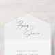 Vereinfachen Sie Ihre Babyduschplanung mit dieser eleganten und modernen Einladung. Das Design besticht durch einen minimalistischen und handgeschriebenen Schriftart auf einem sauberen, schlanken, grünen und weißen Hintergrund. Diese Einladung beinhaltet eine integrierte, perforierte RSVP-Karte und einen Umschlag, die es Ihren Gästen unglaublich bequem macht. Im Abschnitt "Insider Details" werden eine Windelraffle, eine "Bücher für Baby"-Anfrage und ein QR-Code für die Registrierung hervorgehoben, sodass alle Veranstaltungsdetails leicht zu finden sind. Diese stilvolle Einladung eignet sich ideal für eine geschlechtsneutrale oder naturbelassene Babydusche und ist eine schöne und praktische Wahl für Ihre Feier.
