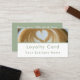 Promote your business with this custom loyalty card. Customize this modern loyalty card template with your own text. Reward your customers after their 10th purchase. The photo template can be replaced with your own photo. The stylish muted green or sage green is trendy and creates a cozy accent. All the simple modern text is editable. Personalize your customer rewards card with your name and address and custom text as needed.