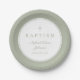 Modern Sage Green Religious Cross Baptism Paper Plates.
