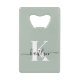 Modern Sage Green Script Monogram Geldbeutel Flaschenöffner