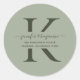 Modern Sage Green Script Monogram Rücksendeadresse Runder Aufkleber