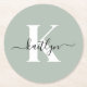 Modern Sage Green Script Monogram Runder Pappuntersetzer