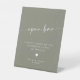 Modern Sage Green Script Open Bar Wedding Sign Sockelschild