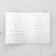Modern style wedding program featuring a simple yet elegant design. Use the template to easily add your favorite photo or remove it in the design editing tool.