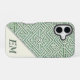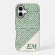Moderne Salbei grün und cremefarbene geometrische Labyrinthgehäuse gemustert iPhone mit Monogramm. Personalisieren Sie Ihre iPhone Gehäuse mit diesem schicken einzigartigen Design. Ideal als personalisiertes Geschenk.