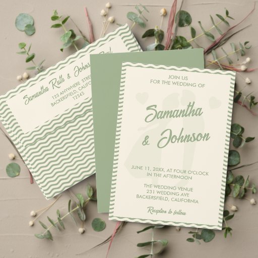 Announce your special day with this modern sage green wavy stripe wedding save the date. The soft flowing stripe design adds a chic and elegant touch, perfect for contemporary, minimalist, or nature-inspired weddings. Fully customizable with your names and wedding date, this stylish save the date creates a beautiful first impression for your upcoming celebration.