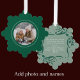 Personalize this stylish sage and hunter green Christmas photo card ornament. Add your photo to this trendy holiday photo card ornament. All the modern script is editable. I drew the whimsical bows and greenery on my tablet for you. The hand drawn original design adds a festive touch. It is overlayed with a sage and green gradient. The snow flake shaped card and be uses as a personalized gift card, a keepsake ornament, or a Christmas photo card. Add your names and year to the back of the card, wishing your friends and family a personal holiday greeting. This flat budget Christmas photo card is original and modern.