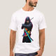 Modern samurai with a futuristic katana, wearing a hoodie, Japanese ink wash painting style (Sumi-e) mixed with neon street art splashes, dynamic pose, t-shirt graphic, isolated on a dark background
