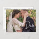 Modern Save the Date Monogram Foto Collage Simple Postcard Elegantes und stilvolles weißes Drehbuch danke Postcard. Ideal für Hochzeiten, Geburtstage, Abschlüsse und andere Veranstaltungen.