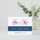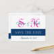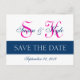 Modern Save the Date Navy Blue, Fuchsia (F400A1) Ankündigungspostkarte