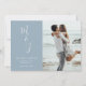 Verkünden Sie Ihren Hochzeitstag mit Ihrem phantastischen Foto vor einem pulverblauen Hintergrund zusammen mit Ihren Initialen in einem skurrilen, modernen Kalligraphieskript. Ideal Save the Date für Hochzeiten, Verlobungen, Jubiläen und andere Veranstaltungen.