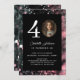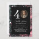 Moderner, schwarz-rosa Glamour 40. Geburtstag, silberne Einladung. Personalisiert in Minuten. Fügen Sie Ihre Daten hinzu, laden Sie Ihr Foto hoch. Sie können die Zahl 4 ändern, sodass Sie die Einladung für Ihre 30., 40., 50., 60. Geburtstag und mehr.