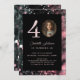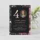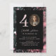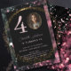 Moderner, schwarz-rosa Glamour 40. Geburtstag, silberne Einladung. Personalisiert in Minuten. Fügen Sie Ihre Daten hinzu, laden Sie Ihr Foto hoch. Sie können die Zahl 4 ändern, sodass Sie die Einladung für Ihre 30., 40., 50., 60. Geburtstag und mehr.