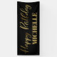 Modernes und elegantes Party-Banner "Happy Geburtday" in Schwarz und Gold, das mit dem Namen des Ehrengast abgestimmt ist.