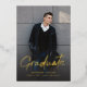 Real gold foil modern script graduation announcement and invitation with photo, more photo and grad party information on the back, simple and casual.