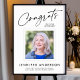 This elegant yet modern retirement sign features a square photo, calligraphy script greeting, and modern typography. The script greeting says "Congrats". This design would be a great choice for many people in different careers. The script and text colors are easily customizable as well.