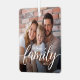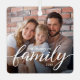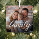 Designed with a minimalist, modern aesthetic, this ornament features your family photo framed by elegant calligraphy text that reads “family,” with space to personalize your last name and year. The soft script and clean layout blend seamlessly with any holiday décor, making it the perfect addition to your tree or a thoughtful gift for loved ones.