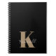 Minimal modernes schwarzes Notizbuch mit einem Monogramm-Initial in einem fett-trendigen Schriftart und Ihrem Namen in einem stilvollen, dünnen weißen Drehbuch. Sie können die Größe des Skript-Schriftartes an den Anzug Ihrer Namenslänge im Entwurfstool anpassen.