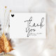 This wedding thank you card features modern script typography with a simple heart accent.
