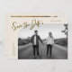 Modern and stylish save the date card featuring a hand lettered script text that says "save the date." One photo in the font and one on the back. The background is cream.