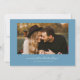 Modern and stylish save the date card featuring a hand lettered script text that says "save the date." One photo in the font and one on the back. The background is denim blue.