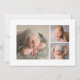 Geburtsankündigung mit moderner Schrift hallo mit einem niedlichen Herz statt dem Buchstaben "o". Ein Foto vorne und drei hinten.