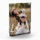 Transform your favorite memory into a stunning piece of modern art with this custom "Love" photo acrylic block. Featuring a bold, hand-brushed white script and personalized names, this design lets your photography take center stage.