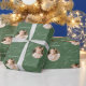 Christmas gift wrapping paper feature modern Merriest Christmas script and pine tips, with personalized family name and two photos in sage green and white. simple and elegant.
